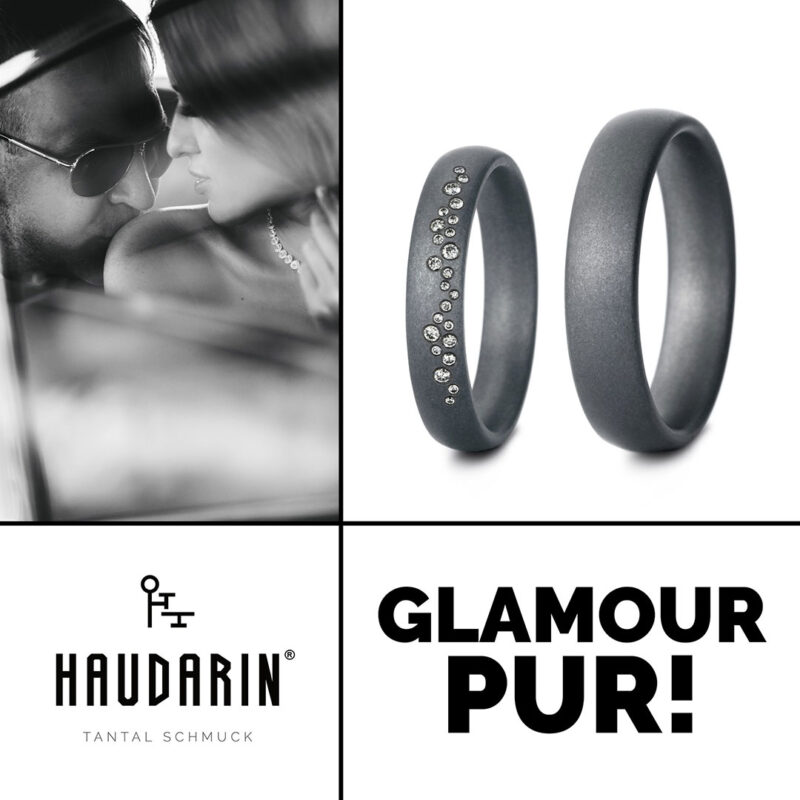 Wenn Du gedacht hast, Tantal sei zu cool und zu modern für Glamour, hast Du unsere Ringe mit der Diamantstraße noch nicht gesehen! Es gibt sie mit verschiedenen Oberflächen, hier in feinmatt, auf denen unterschiedlich große Diamanten wie hingestreut funkeln.